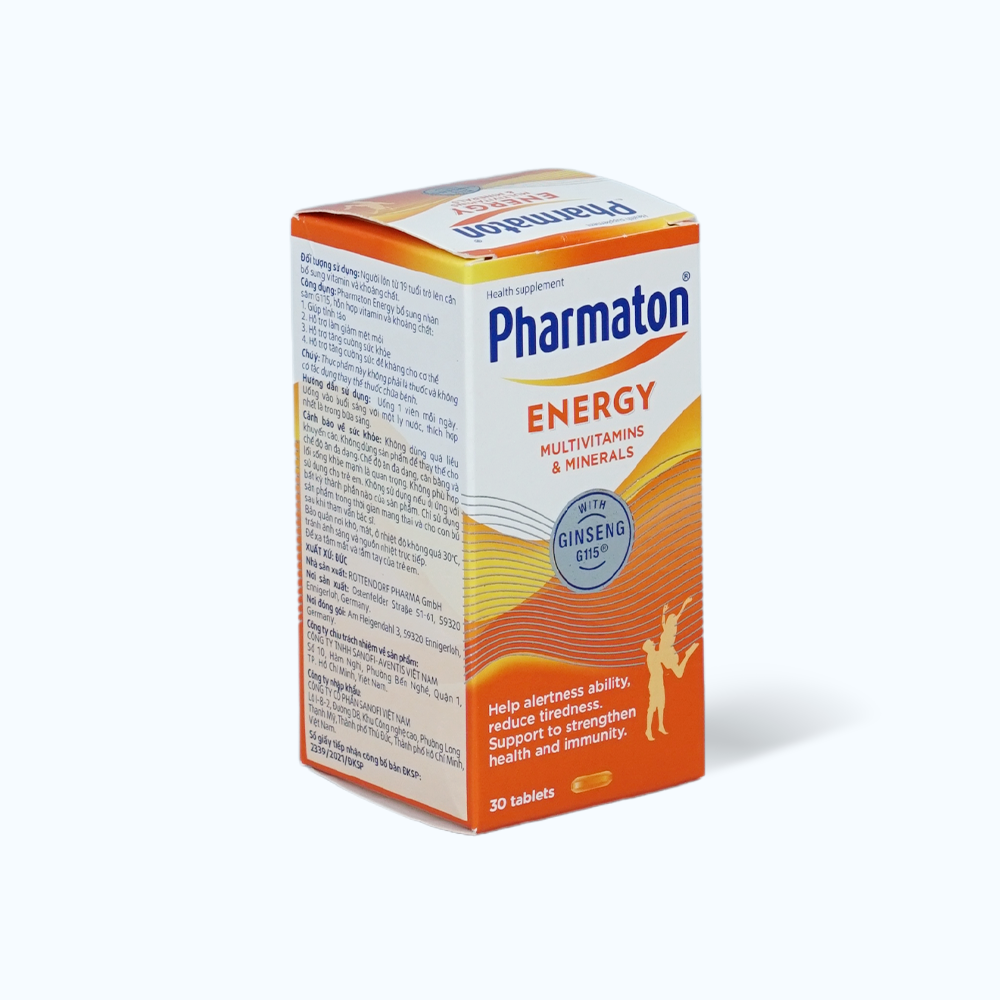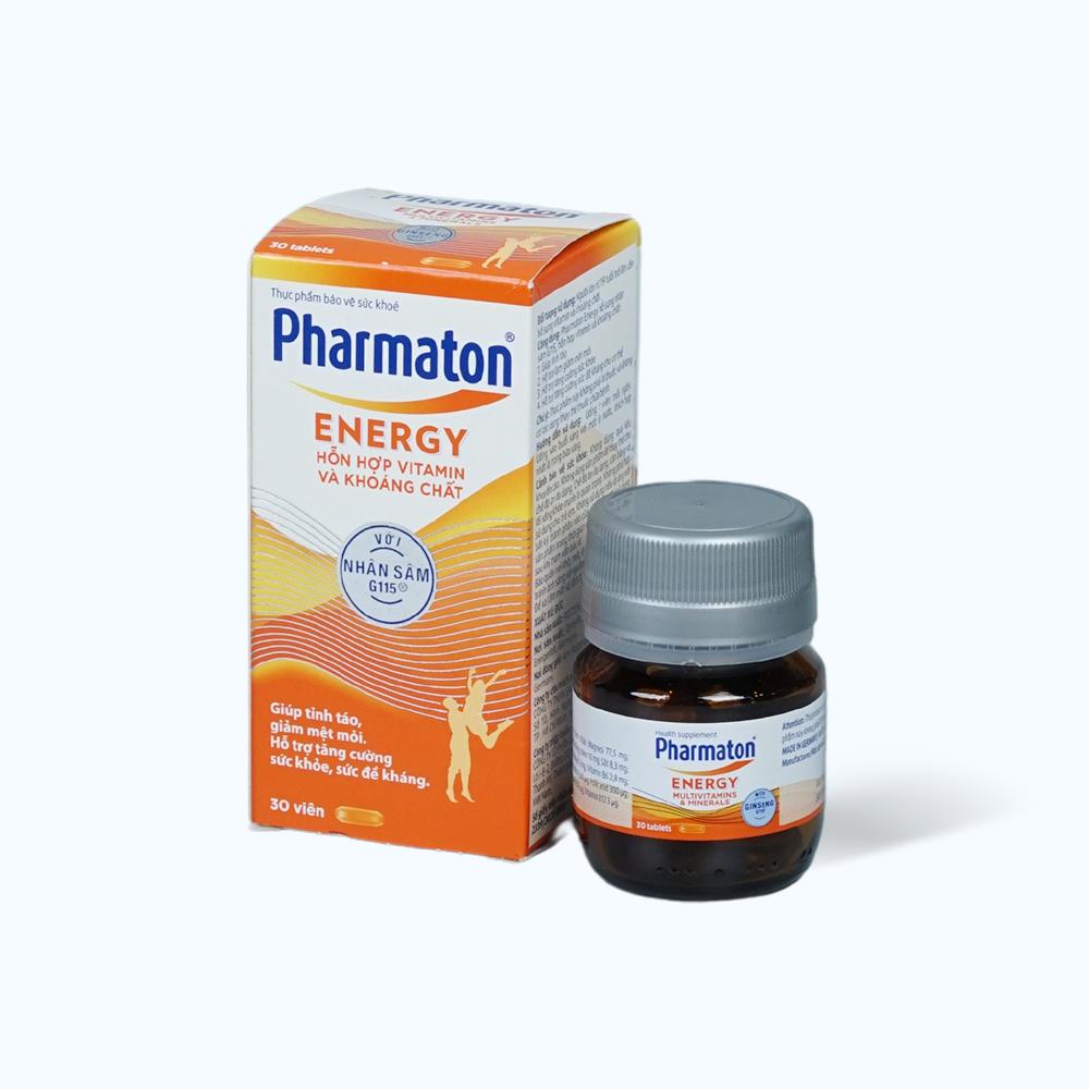 Pharmaton Energy là thực phẩm chức năng, bổ sung nhân sâm G115, hỗn hợp vitamin và khoáng chất giúp tỉnh táo, hỗ trợ làm giảm mệt mỏi, tăng cường sức khỏe, hỗ trợ tăng cường sức đề kháng cho cơ thể.