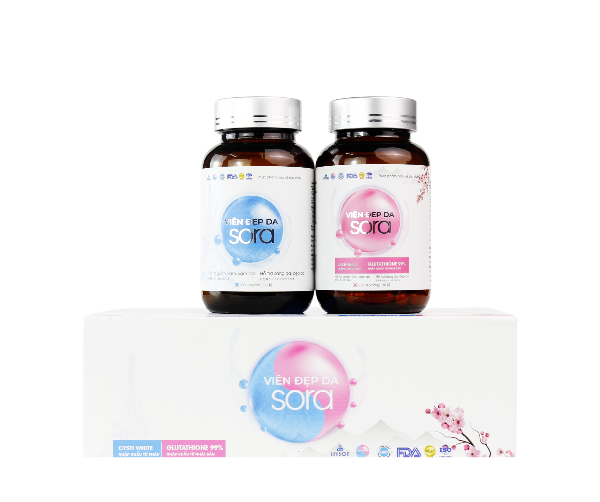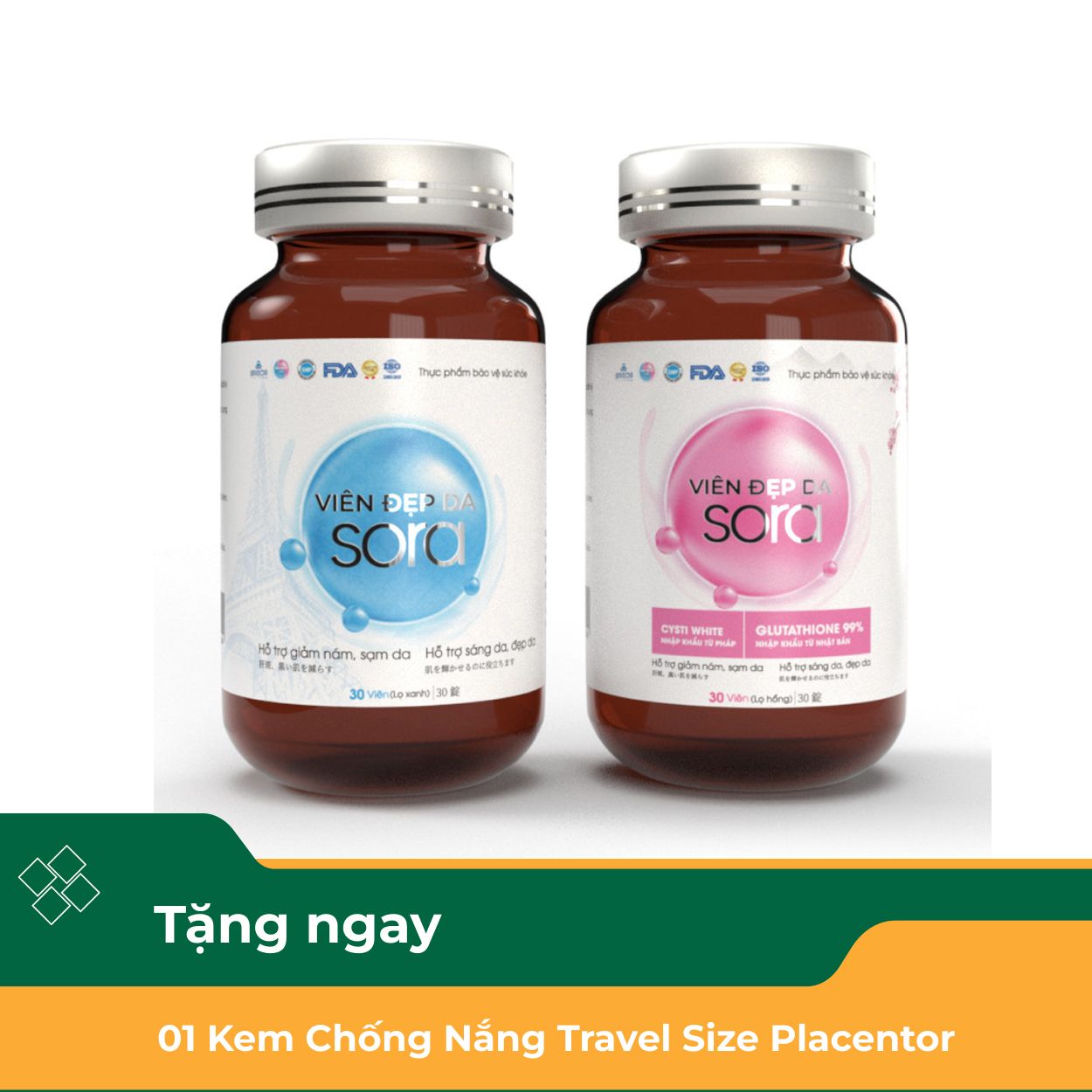 - Viên uống Sora hỗ trợ đẹp da (Hộp 2 chai x 30 viên)