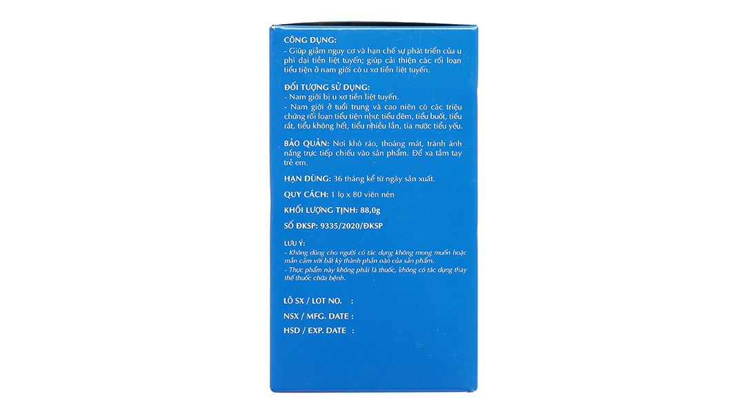 Công dụng | Hỗ trợ làm giảm kích thước và hạn chế sự phát triển của u phì đại tiền liệt tuyến. |